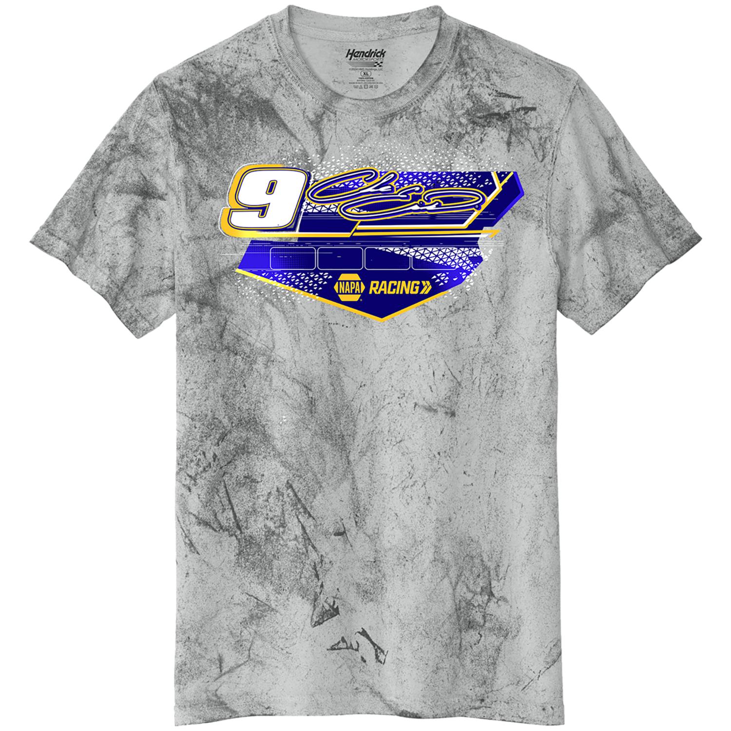 Stand out in style with the Chase Elliott #9 NAPA Colorblast T-shirt. This eye-catching tee features a vibrant colorblast design and bold #9 graphics, making it a must-have for any Chase Elliott fan. Perfect for race day or casual wear!