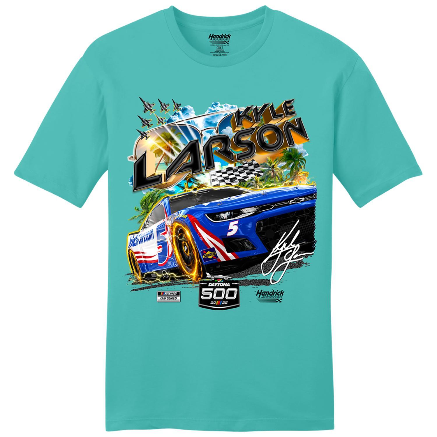 Celebrate Kyle Larson and the 2025 Daytona 500 with this #5 HendrickCars.com T-shirt! Featuring bold graphics of Larsons car and official race details, this comfortable tee is perfect for race day or everyday wear. A must-have for loyal NASCAR fans!