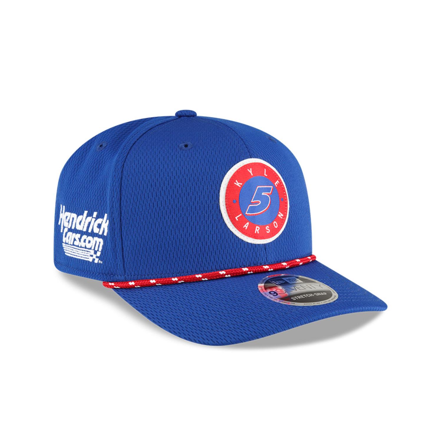 Show your support for Kyle Larson with the #5 New Era 9SEVENTY SS Rope Sideline Cap. This cap features a structured fit, breathable mesh panels, and a classic rope detail across the visor. Embroidered with Larsons car number and team branding, it offers both style and comfort for any racing fan.
