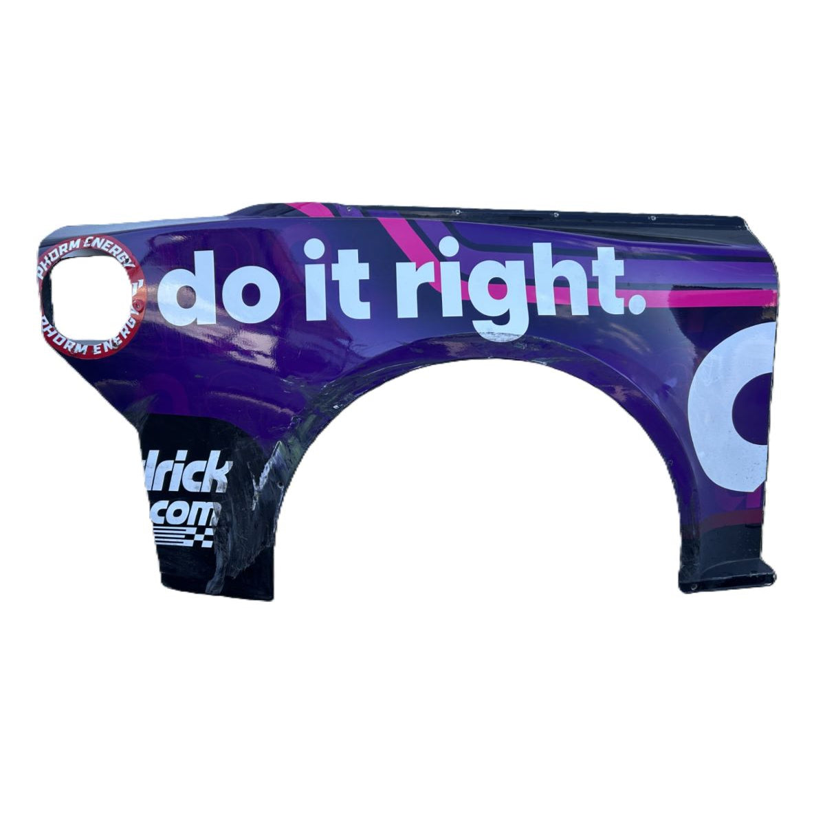 Item is no longer in mint condition after being raced by our drivers or used by our team, so expect wear, scratches, bends and other damage as seen in the photos, evidence of a hard-fought day at the track!